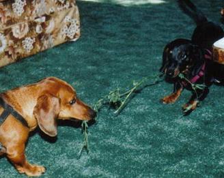 This used to be a regular Doggy toy, but Dachshunds aren't regular dogs, so the toy had to be "Disassembled" before it could be decently played with. |