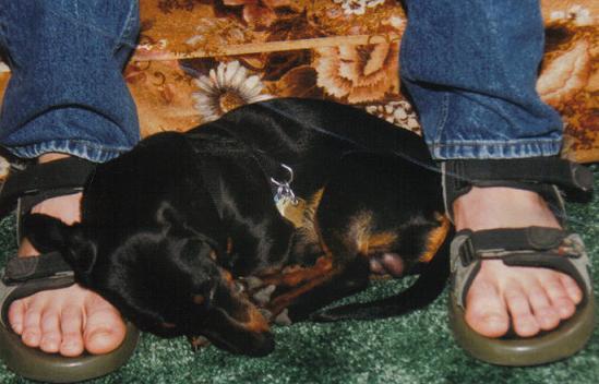 Here's Tax all curled up between my son's feet. He never really likes to be cuddled, but prefers to lay up against someone. |